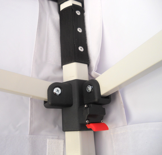 Wir verwenden nur die besten Bauteile. Durch innovative Montageteile sind unsere Faltzelte ohne Werkzeug innerhalb von Minuten einsatzbereit.