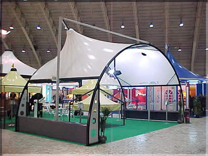 Diese feuerverzinkte, massive Stahlkonstruktion, ist für den ganzjährigen Einsatz gebaut. Das Wasser wird durch eine umlaufende Regenrinne, durch die Fußträger, zum Boden hin abgeleitet. Das Zelt ist für großflächige Überdachungen geeignet und bestens kombinierbar.